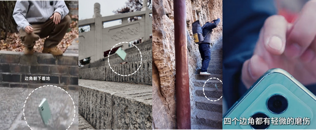 众所周知,五岳地形复杂,汇聚了粗粝嶙峋的岩面、坚硬陡峭的阶梯与湿滑多变的苔石,可以说是为手机构建了一个瞬息万变的“终极试炼场”。在这里, WIKO X70从千年石阶翻滚而下,被猛烈扔向坚硬岩壁,沿陡峭梯级多角度撞击跌落……机身反复与粗糙石面剧烈摩擦,甚至边角精准磕到岩壁上,各种暴虐下来,WIKO X70经受住了考验,可以看到只是机身边角有擦痕,屏幕有轻微擦痕,功能体验完好。相比荣耀X70,WIKO X70的这波极限测试更贴近用户的实际使用。
